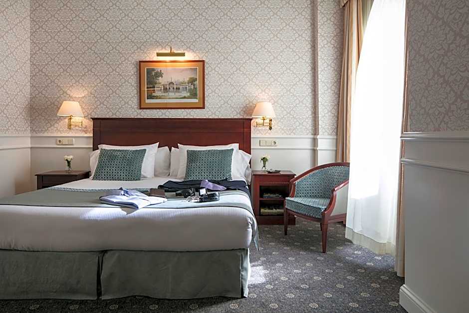 This exterior room type overlooks the Gran Vía street or the San Bernardo street.
